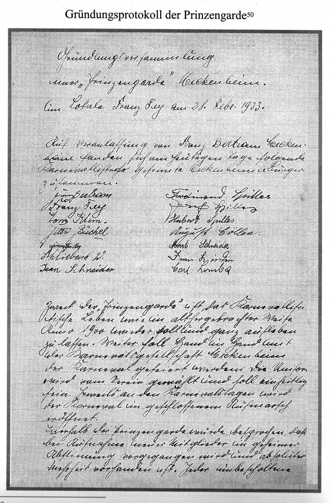 Gründungsprotokoll der Prinzengarde Meckenheim