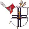 In der Mitte befindet sich der Reichsapfel der Königin Richetza in blau und goldenem Kreuz.